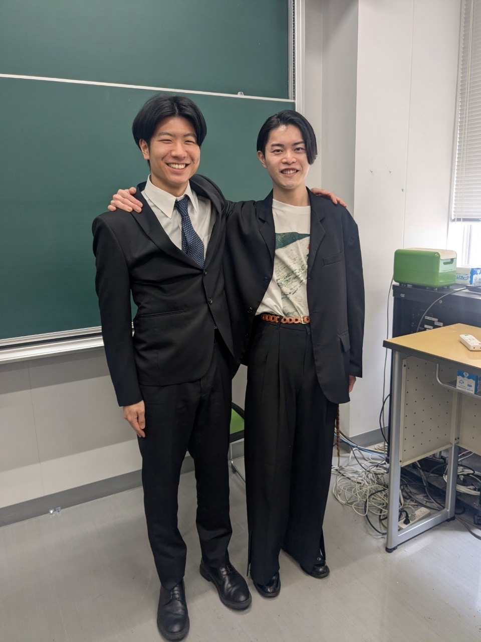 2025年3月25日に行われた卒業式の様子です。 B4とM2ともに無事に卒業することができました。 おめでとうございます。 M2の先輩方とは離れてしまいますが、また会えると良いですね。 (画像クリックで拡大します)