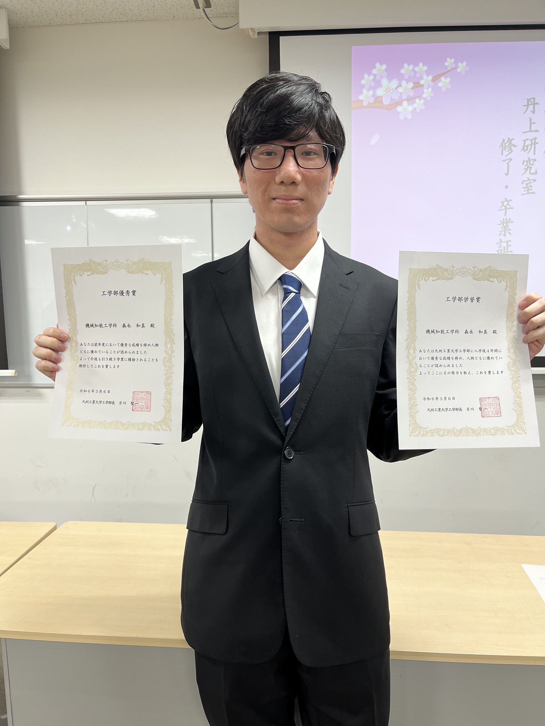 From our lab, B4 student Morinaga was awarded the Faculty of Engineering Honor Award.