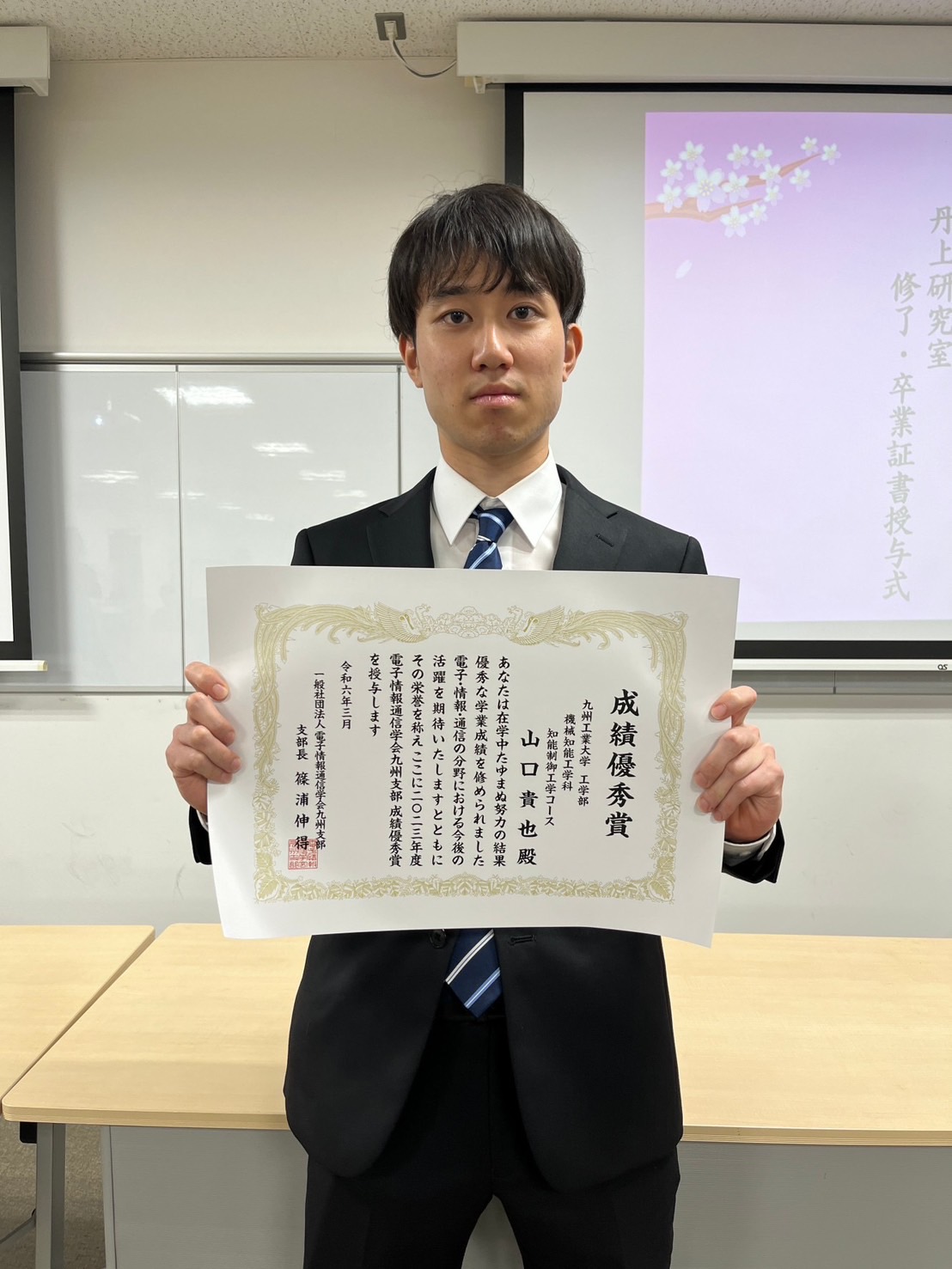 From our laboratory, B4 student Yamaguchi won the highest academic achievement award.